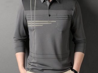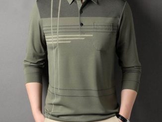 Mens Casual Striped Long Sleeve Collared T Shirt Polo Shirts