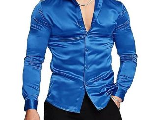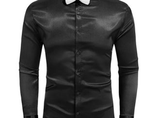 Men’s Luxury Shiny Silk Button Down Satin Shirt Long Sleeve Wedding Black Dress