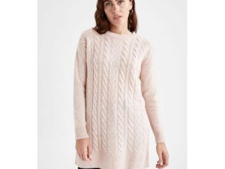 Woman Regular Fit C Neck Long Sleeve Tricot Tunic – Pink
