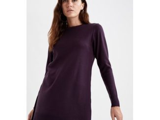 Woman Regular Fit Crew Neck Long Sleeve Tricot Tunic – Purple