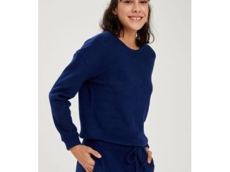 Woman Relax Fit Crew Neck Long Sleeve Homewear Knitted Tops – Navy