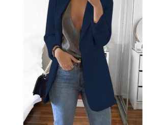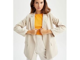 Woman Loose Fit Blazer Collar Blazer-Beige