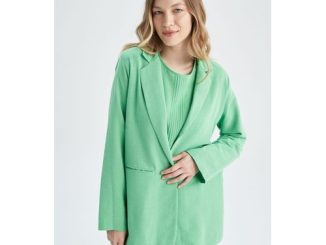 Woman Regular Fit None Blazer-Green